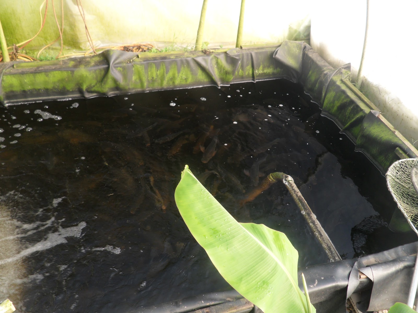 ...you'll arrive at the tilapia tank. Here's a pic of them gathering near the surface right before feeding time: