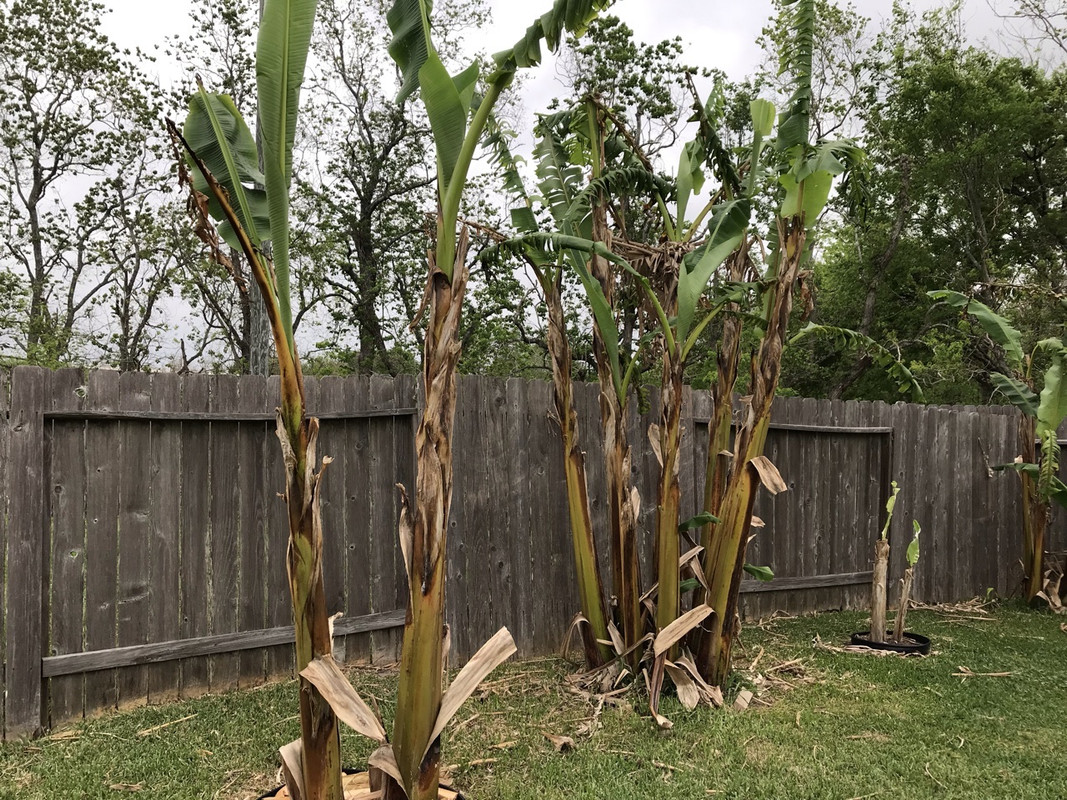 I'm in Southern Texas and was also hit by the Winter Storm last year but it only got down to 14F here (with tons of wind) Thankfully all my bananas survived with protection but many died to the ground and had to start over. Orinoco is my go-to recommendation for the hardiest and easiest banana to grow by far. It is also a very prolific pupper once established. My mother has been growing them for 20+ years with little to no care besides trimming. They literally thrive on just rainwater and sun. Praying Hands is also very cold hardy from experience. It grows just as fast but doesn't seem to pup as much as Orinoco. Both shrugged off the winter storm this year when it got down below freezing 28F with no protection either. This was my Praying Hands and my Orinoco in the back after last years winter storm This is them now after shrugging off freezing temps. Praying Hands on the left and Orinoco on the right. It was actually 3 Praying Hands but one flowered in Winter and died so I cut it down. Even so there's 12+ Orinocos compared to the Praying hands basically growing under the same conditions. ![]() Also Tall Namwa, Blue Java, and 1000 Fingers are known for being hardy as well. ![]()