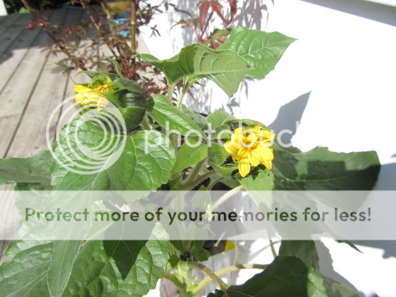 ![]() Here too, is my variegated and very colorful Croton plant, which allows you to enjoy the splendor of Autumn hued foliage all year round... ![]() My dwarf mini sunflower plant with two new flowers about to open... ![]() This is a deciduous dwarf purple-leaf Concorde Barberry which has beautiful maroon foliage that becomes even more intense during Fall. It will have small yellow flowers followed by red berries... ![]() The leaves are so pretty... ![]() : ) |