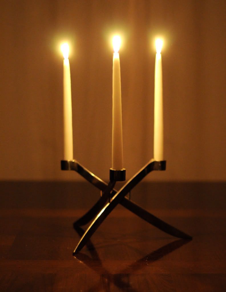 I have a candle snuffer too...although not vintage. They're totally cool and much better than blowing the candles out and getting wax everywhere. :( I'll load some other shots shortly... : ) |
