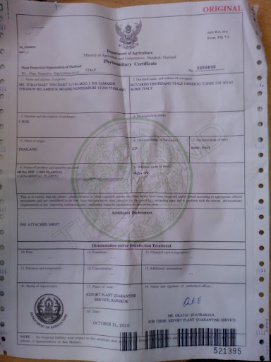 ![]() It took 3 weeks to get from Thailand to Italy: The corm seems not too bad: And those are the Phytosanitary papers: What now ? Do I have to put it only in a pot and water or do I need to take any addictional precaution ? |